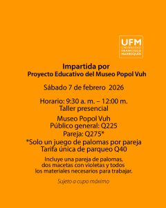 El sábado 7 de febrero de 2026, de 9:30 a. m. a 12:00 m., te invitamos a disfrutar de este taller libre presencial en el Museo Popol Vuh.