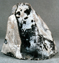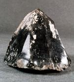 Núcleo piramidal con abundancia de depósitos de sedimento adherido a su superficie. La base presenta una forma circular.