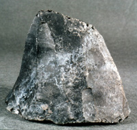 Núcleo piramidal que muestra su vértice astillado. La base es ligeramente aplanada con algunas “porosidades” en su estructura. Restos de corteza cerca del vértice.