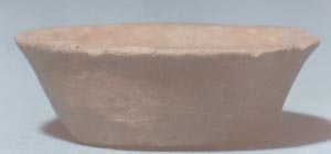 Cuenco de pared recto divergente, base plana, borde plano. No presenta decoración.