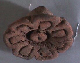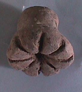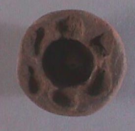 Molde circular, acanaladuras semicirculares en formando una flor de seis pétalos, abajo una acanaldura circular.