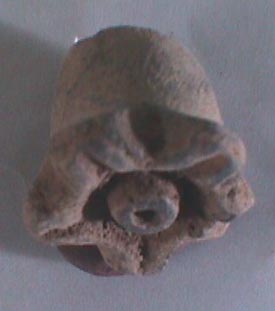 Cántaro globular con decoración zoomorfa. Borde divergente y labio redondeado. La base presenta tres soportes cónicos. En la parte frontal, la vasija presenta una cabeza de un animal no identificado, con dos pequeñas extremidades. A ambos lados, depresiones que cruzan en un trayecto semicircular de adelante hacia atrás. En la parte posterior, una prolongación fracturada…