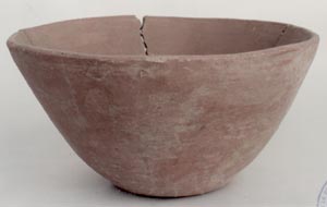 Cuenco de pared recto divergente, borde redondeado, base plana. Donación: Joya Hairs, 29/12/82. Según ficha de donación la pieza proviene de Salcajá.