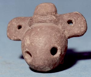 Figurilla silbato, con cuatro agujeros, pared globular.