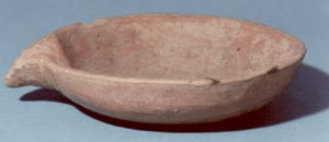 Plato con vertedera de pared curvo divergente, base plana. Decoración: vertedera.