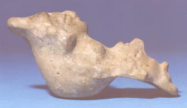 Silbato zoomorfo. Representa posiblemente un sapo. La boquilla se encuentra en la parte de atrás de la figurilla.