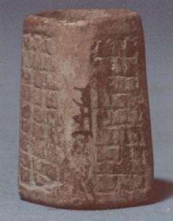 Sello miniatura, con diseños cuadriculados en las 4 paredes, y abajo de la base un diseño de “S”.