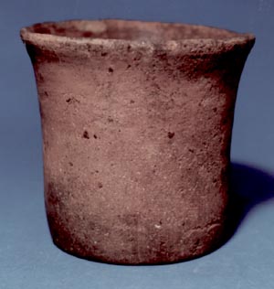 Vaso de pared vertical, con base plana y borde ligeramente divergente. El vaso no presenta ninguna decoración.