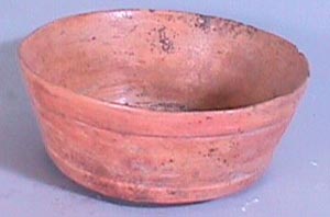 Cuenco tipo Tiquisate, labio redondeado, pared curvo convergente, base convexa. Decoración: una acanaladura debajo del borde.