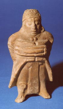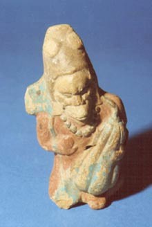 Figurilla antropomorfa con yugo en la cintura y taparrabos como faldón.