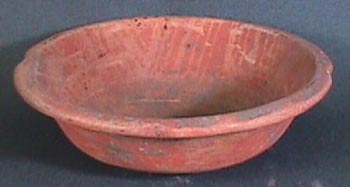 Cuenco, labio redoneado, pared curvo convergente, base plana. Decoración: dos líneas incisas paralelas, debajo del borde. Posee cinabrio hasta la mitad del cuenco.
