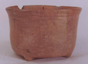 Cuenco Trípode, soportes pequeños, cónicos y sólidos, pared curvo divergente y borde redondeado. Dos líneas incisas rodeando el borde. Decoración Usulután.