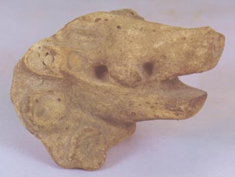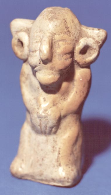 Figurilla, de rostro antropomorfo y ojos punzonados.