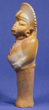 Figurilla silbato, con rostro antropomorfo con tocado en forma esgrafiada, brazos extendidos.