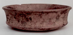 Cuenco de pared curvo divergente, borde redondeado, base plana. Decoración: diseños en forma de escalinatas en inciso medio.