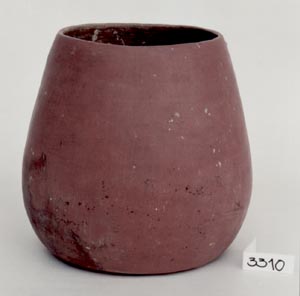 Tecomate de pared curvo convergente, base plana, borde redondeado. Sin decoración.