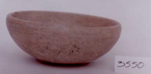 Cuenco de pared curvo convergente, base pedestal, borde redondeado. Decoración: acanaladura abajo del borde.