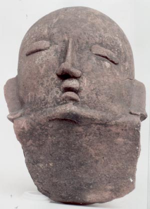 Cabeza antropomorfa, ojos alargados, nariz alargada, boca pequeña, orejas en forma de aleta. Fragmento de cuenco.