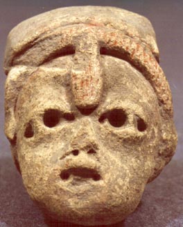 Figurilla, cabeza antropomorfa, tocado en forma de pastillaje.