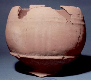 Cántaro de pared globular, base convexa, cuello corto, borde redondeado. No presenta decoración.