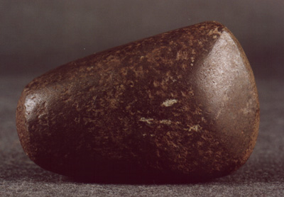 Escultura zoomorfa, piedra de moler miniatura para tintes y mezclar pigmentos. Posiblemente un lagarto, el cual se encuentra dividido en dos.