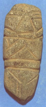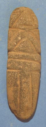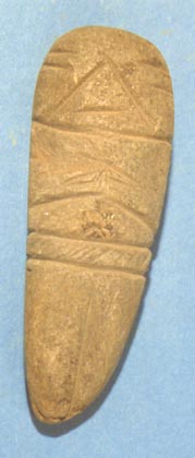 Aguja de esquisto, con un diseño inciso horizontal en la parte superior.