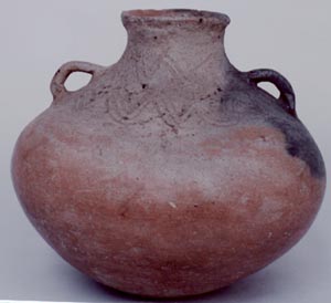 Cántaro de pared globular, base convexa, borde evertido, cuello corto, dos asas. Decoración: geométrica incisa, la parte superior del cántaro se encuentra en blanco, el cuerpo de la pieza no es redondo, pero sí un poco cuadrado.
